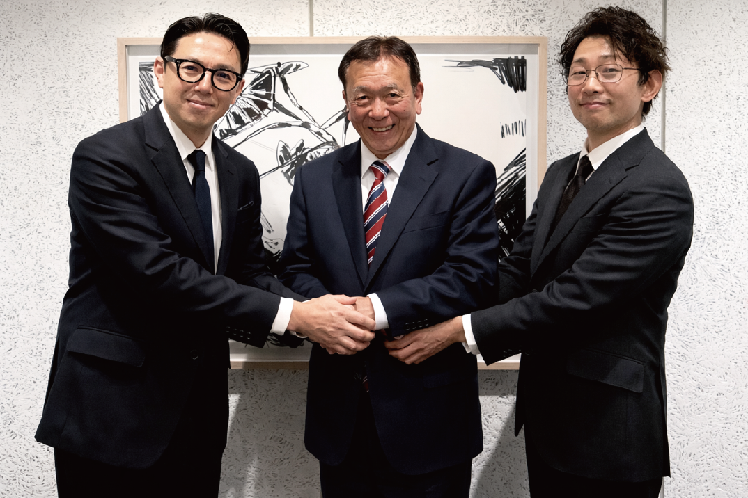 左)取締役副社長 成内、 中央) 顧問 櫻田厚